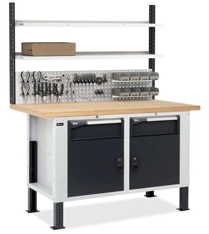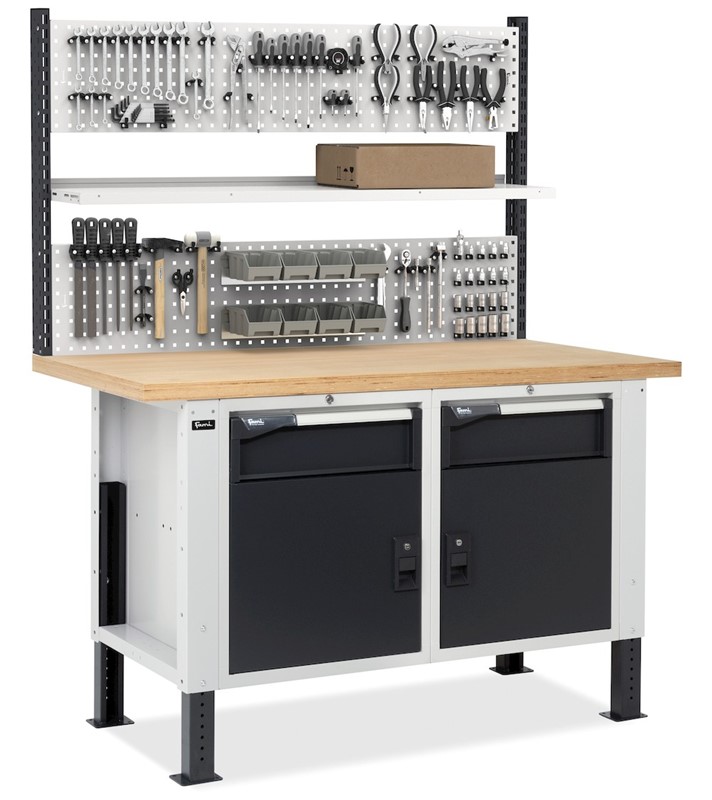 Banco da Lavoro con 2 Cassetti e 2 Vani e Parete