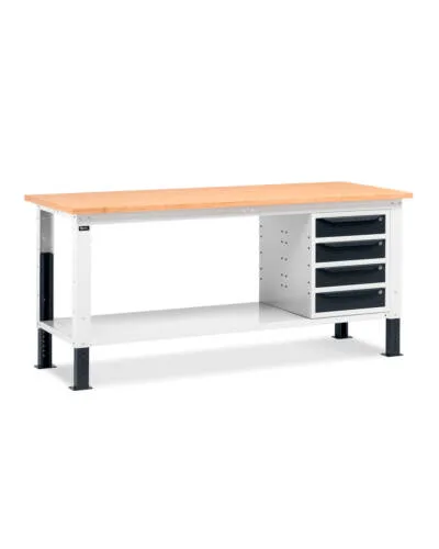 Banco da Lavoro Work Up con Cassettiera a 4 Cassetti, Piano in Multiplex L=2000mm