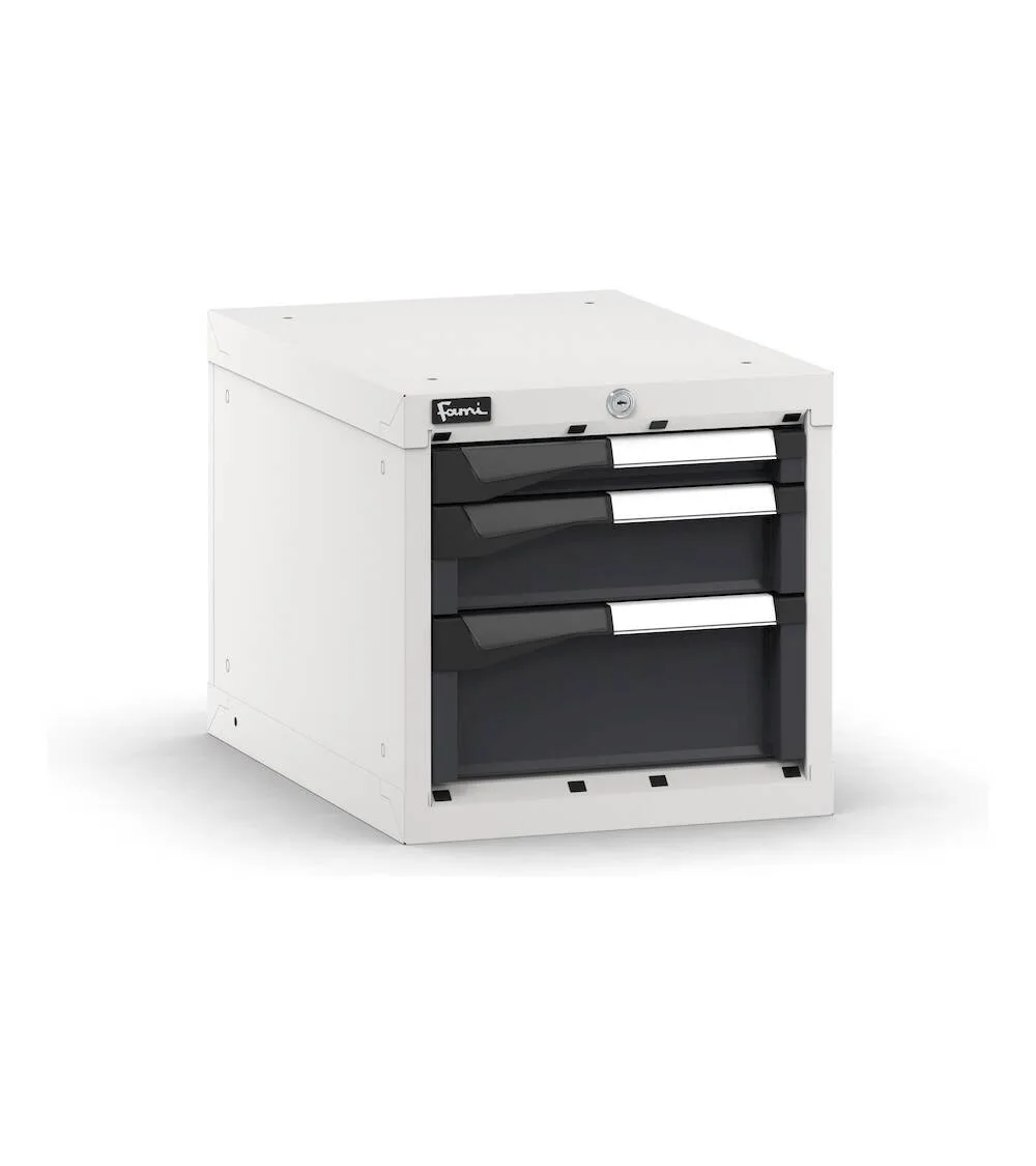 Il blocco cassettiera da banco è un pratico e resistente portattrezzi che può essere facilmente allestito internamente con divisori e cassette divisorio. I cassetti possono anche contenere i Pikpad, vassoi per l’organizzazione dell’attrezzatura in ottica lean. Presenta 3 cassetti ad estrazione flessibile e una serratura a cilindro con chiave per custodire in sicurezza il contenuto. Può essere installato sia nella parte inferiore di banchi da lavori, oppure posizionato in particolari aree dell’azienda per avere tutto il necessario sempre a portata di mano.