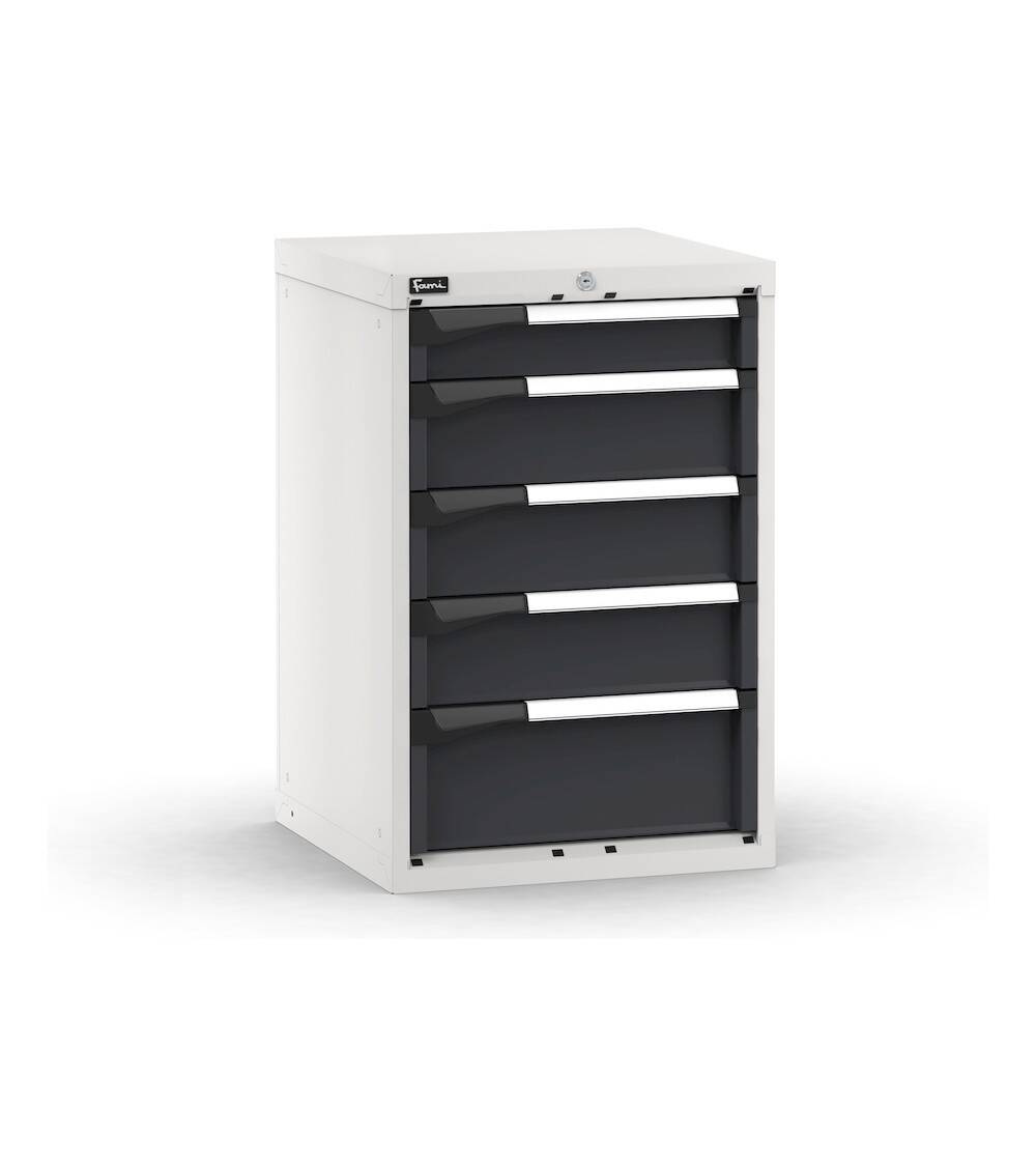 Il blocco cassettiera da banco può essere installato in un banco da lavoro oppure utilizzato come pratica cassettiera portautensili in officina o reparto. Ha 5 cassetti ad estrazione flessibile di varie altezze caratterizzati da fondo forato e lati scanalati per l’installazione di divisori e cassette contenitore. L’interno del cassetto può essere anche allestito utilizzato i vassoi portautensili Pikpad. La sicurezza è garantita dalla serratura a cilindro con chiave che blocca l’apertura di tutti i cassetti ed evita l’accesso al personale non autorizzato.