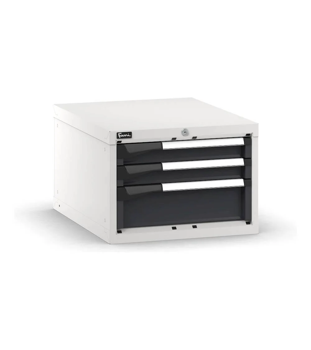 Il blocco cassettiera da banco è un pratico e resistente portattrezzi che può essere facilmente allestito internamente con divisori e cassette divisorio. I cassetti possono anche contenere i Pikpad, vassoi per l’organizzazione dell’attrezzatura in ottica lean. Presenta 3 cassetti ad estrazione flessibile e una serratura a cilindro con chiave per custodire in sicurezza il contenuto. Può essere installato sia nella parte inferiore di banchi da lavori, oppure posizionato in particolari aree dell’azienda per avere tutto il necessario sempre a portata di mano.
