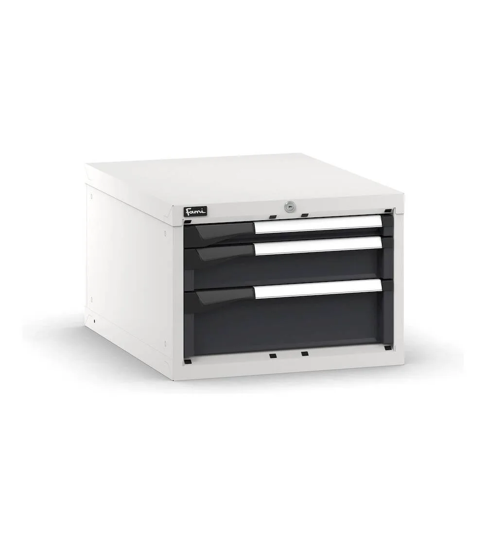 Il blocco cassettiera da banco è un pratico e resistente portattrezzi che può essere facilmente allestito internamente con divisori e cassette divisorio. I cassetti possono anche contenere i Pikpad, vassoi per l’organizzazione dell’attrezzatura in ottica lean. Presenta 3 cassetti ad estrazione flessibile e una serratura a cilindro con chiave per custodire in sicurezza il contenuto. Può essere installato sia nella parte inferiore di banchi da lavori, oppure posizionato in particolari aree dell’azienda per avere tutto il necessario sempre a portata di mano.