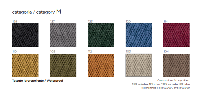 Divano a due posti con seduta arancione e schienale di colore grigio, tessuto idrorepellente, 90% poliestere 10% nylon, disponibile in diversi colori.