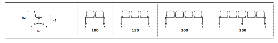 Panca da attesa Ginger con seduta e schienale in legno, disponibile nelle configurazioni 2, 3, 4 e 5 posti
