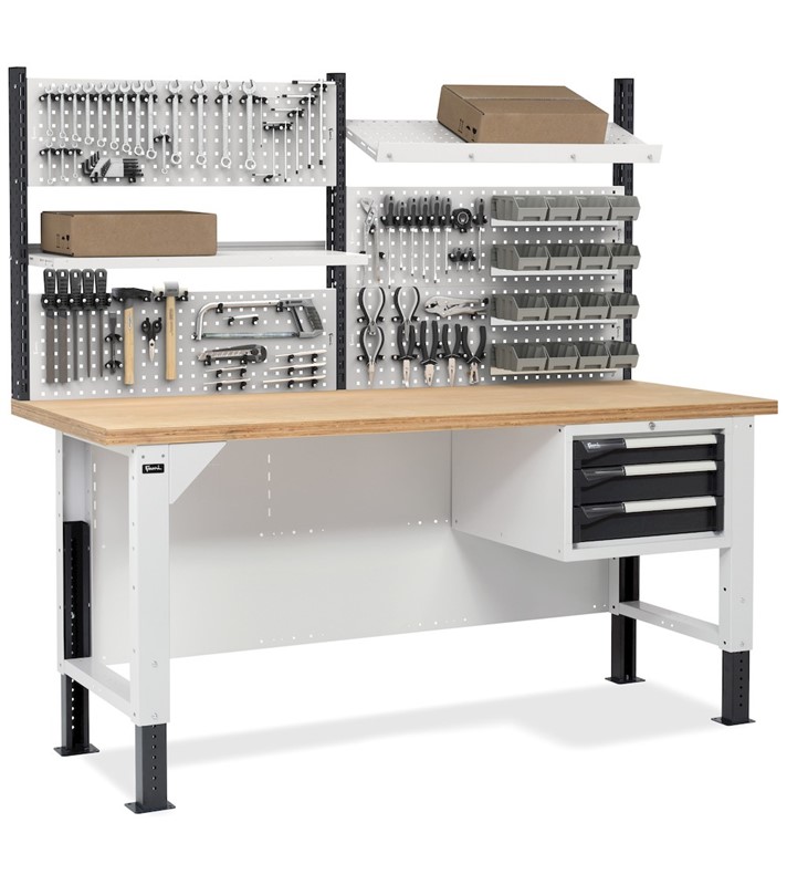 Banco da Lavoro 2m con 3 Cassetti e Parete