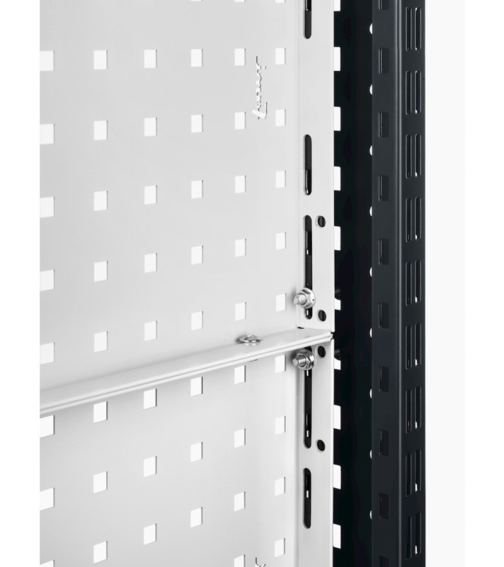 – 2 kit 3 pannelli forati/mensole con 2 bordi fermacasse