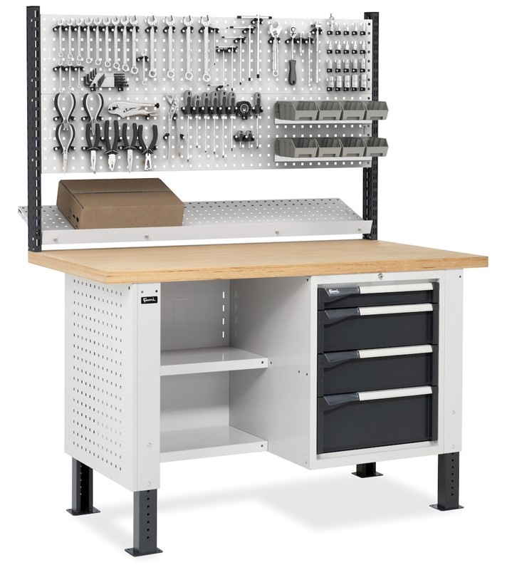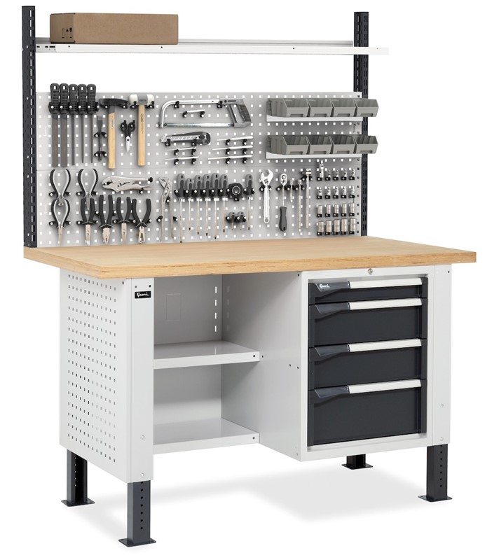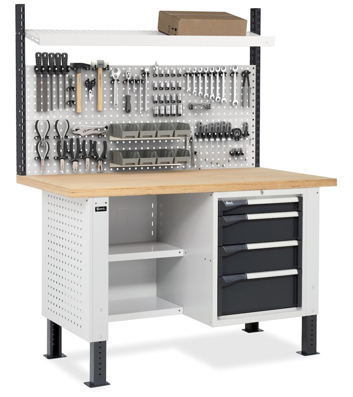 Banco da Lavoro con 4 Cassetti e Parete