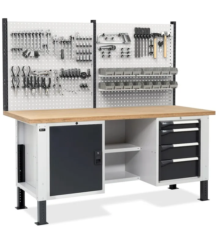 Il banco da lavoro regolabile in altezza Work Master BR è un pratico alleato per il lavoro grazie al robusto piano in multiplex da 40 mm ideale per effettuare numerose operazioni. Il materiale e gli utensili possono essere organizzati nell’armadio con 4 cassetti, con portata ed estrazione variabile, nei 2 semipiani oppure nel vano con porta e piano interno.