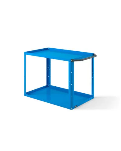 La struttura leggera e robusta e le 4 ruote in gomma standard ne facilitano la movimentazione, mentre i diversi piani sono dotati di bordo rialzato per evitare la caduta del materiale durante il trasporto.
