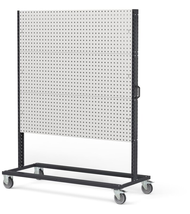 Il carrello con 6 pannelli forati Bin Cart rappresenta la base su cui aggiungere accessori e ganci per creare un carrello portattrezzi e avere così a portata di mano tutto il necessario per effettuare lavorazioni. In alternativa è possibile anche realizzare carrelli lean production andando ad aggiungere sistemi come contenitori a bocca di lupo e bracci estensibili per l’organizzazione dei kit utilizzati nelle catene di assemblaggio. La maniglia laterale e le ruote in gomma antitraccia sintetica rendono la movimentazione più rapida e semplice.