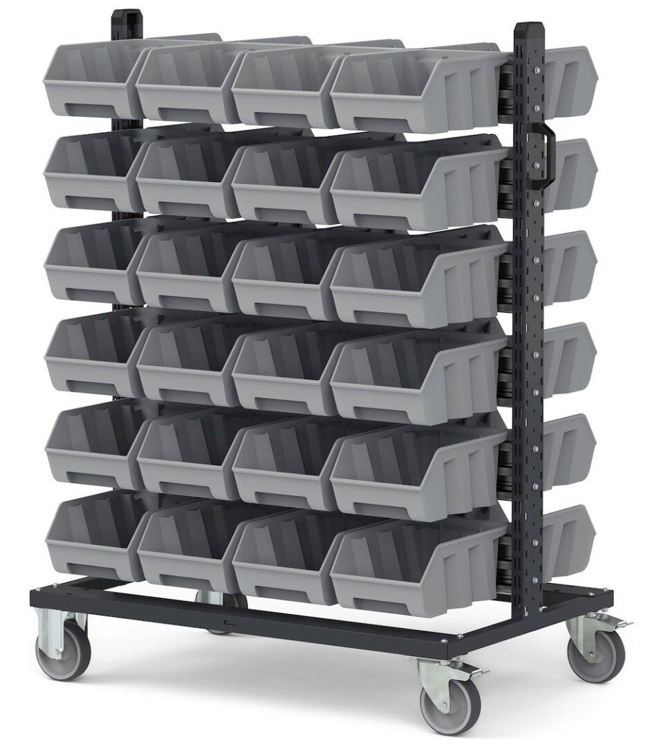 Il carrello portaminuterie con 48 contenitori bocca di lupo Picking Box Air mis. 3A2 consente di disporre di una postazione mobile per l’organizzazione di componenti di piccole dimensioni come minuteria, viteria e ricambi per ottimizzare e rendere più efficiente il lavoro.