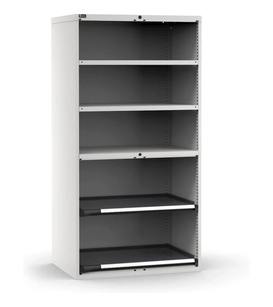 I cassetti si aprono e si chiudono, infatti, agevolmente grazie alle guide che scorrono su cuscinetti a sfera ad alta resistenza, prevenendo gli infortuni sul lavoro.