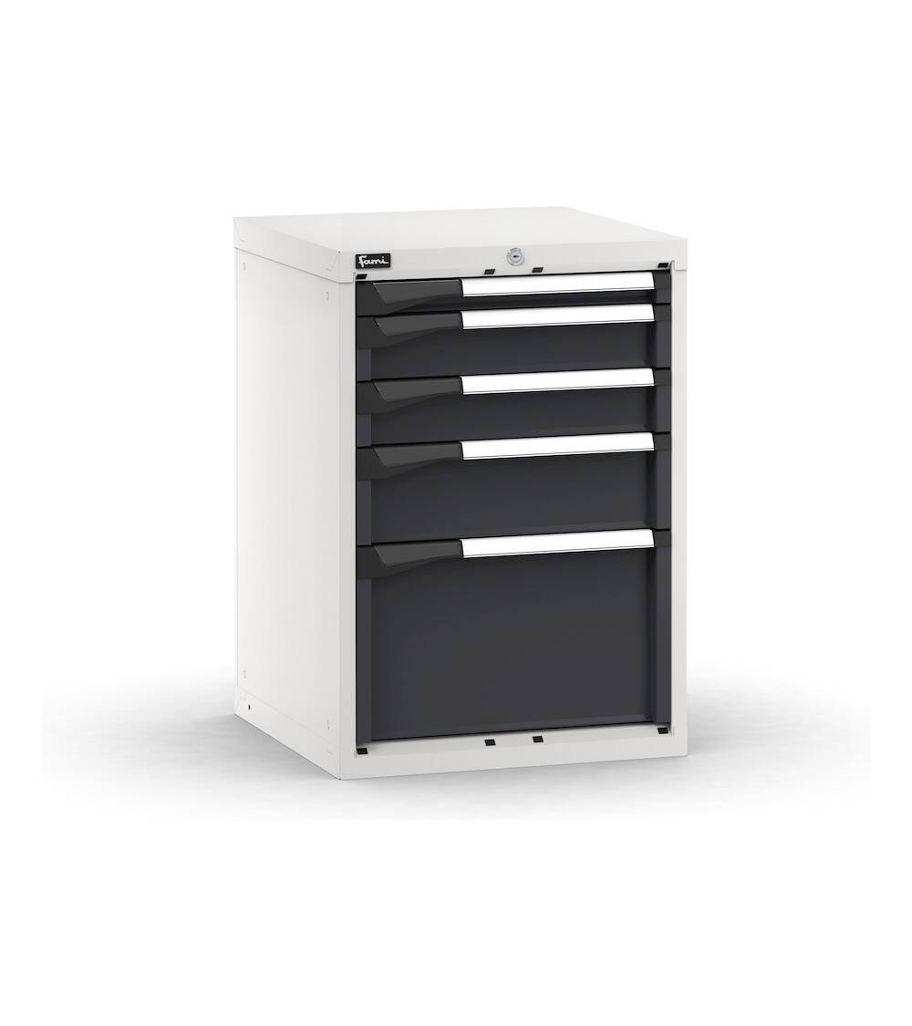 Il blocco cassettiera da banco può essere installato in un banco da lavoro oppure utilizzato come pratica cassettiera portautensili in officina o reparto. Ha 5 cassetti ad estrazione flessibile di varie altezze caratterizzati da fondo forato e lati scanalati per l’installazione di divisori e cassette contenitore. L’interno del cassetto può essere anche allestito utilizzato i vassoi portautensili Pikpad. La sicurezza è garantita dalla serratura a cilindro con chiave che blocca l’apertura di tutti i cassetti ed evita l’accesso al personale non autorizzato.