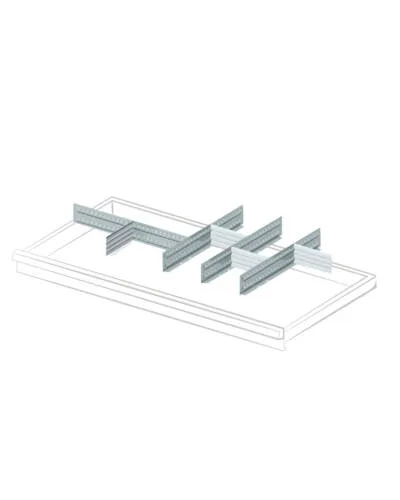 Divisori longitudinali in lamiera d’acciaio zincata ideali per suddividere lo spazio all’interno dei cassetti ed organizzarlo in modo ottimale. I divisori longitudinali sono lisci e vengono fissati al cassetto tramite viti.