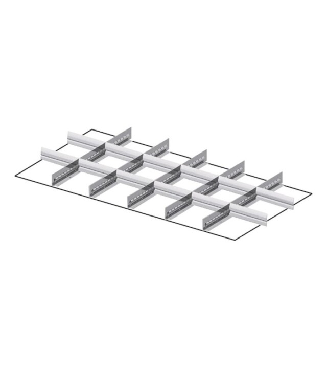 I divisori per cassetti longitudinali fessurati zincati consentono la suddivisione del cassetto in scomparti per l’organizzazione di utensili e componenti di media dimensione. Le scanalature presenti permettono l’inserimento dei divisori trasversali in alluminio in qualsiasi punto del divisorio per adattare lo spazio in base al materiale da contenere.