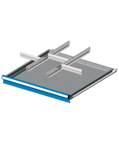 I divisori per cassetti longitudinali fessurati zincati consentono la suddivisione del cassetto in scomparti per l’organizzazione di utensili e componenti di media dimensione. Le scanalature presenti permettono l’inserimento dei divisori trasversali in alluminio in qualsiasi punto del divisorio per adattare lo spazio in base al materiale da contenere.