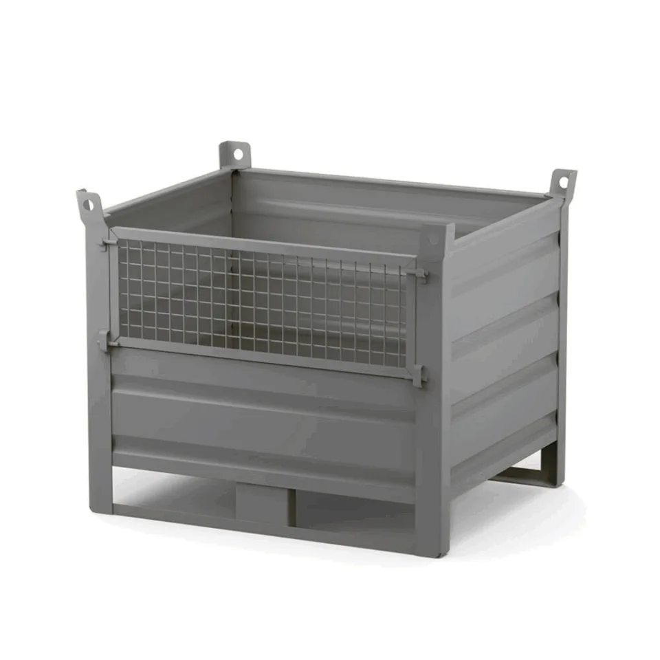 Contenitore in lamiera leggero con sportello in rete, portata 1000 Kg