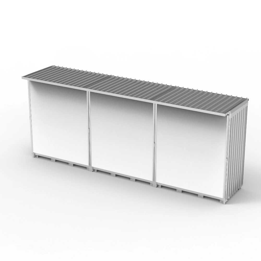 Il container modulare in acciaio zincato offre una soluzione sicura e organizzata per lo stoccaggio di 12 IBC, ideale per ambienti industriali. Dotato di vasca di raccolta da 4050 litri, garantisce massima sicurezza contro eventuali fuoriuscite.
