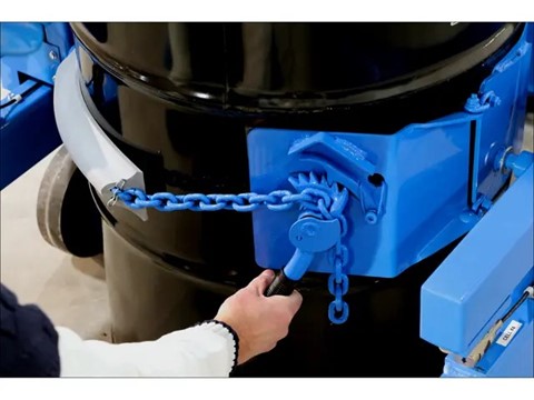 Il modello 515-N-115 dispone di sollevamento e ribaltamento del fusto azionati a 12 V DC con batteria.