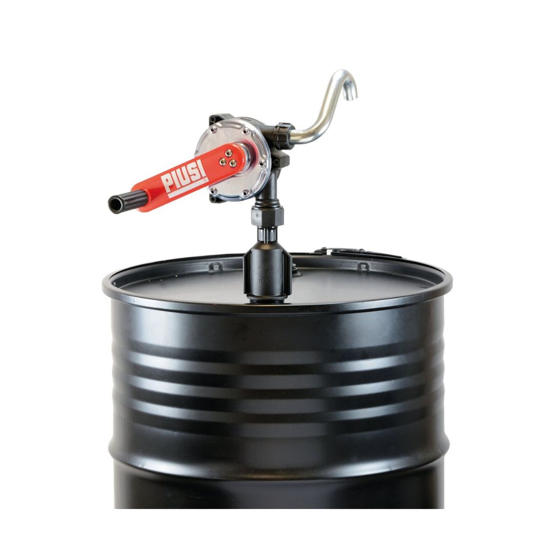 Pompa a manovella in alluminio PIUSI, per fusti da 60/200 L con tubo tubo di aspirazione 950 mm componibile.
