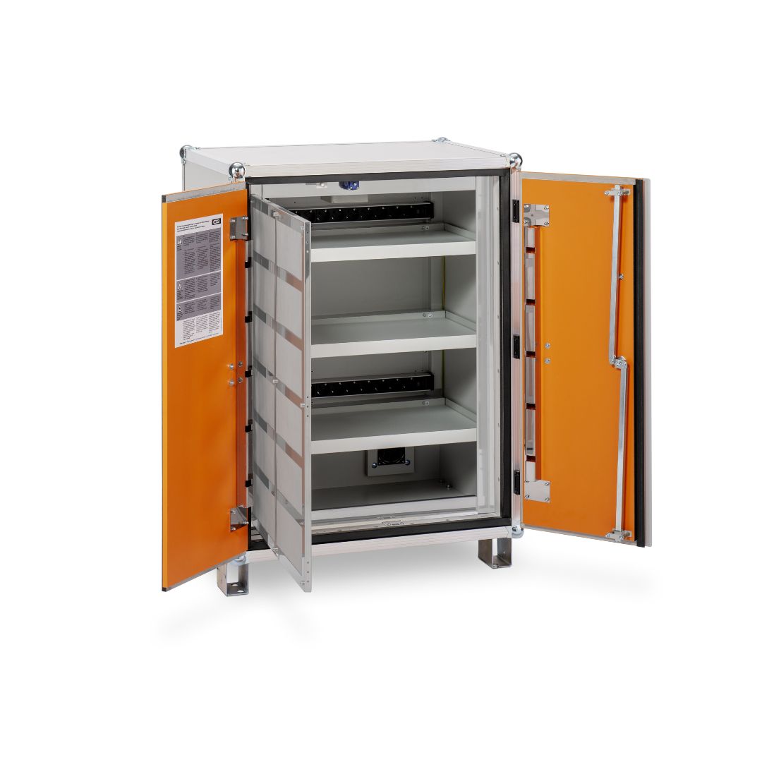 Gli armadi per batterie a litio della serie 8/5 e 8/10 sono dotati di un avanzato sistema di protezione contro le esplosioni.
