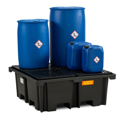 Vasca di raccolta per pallet 400 l con griglia in PE, dimensioni totali:129 x 129 x 50 cm, peso 28 kg