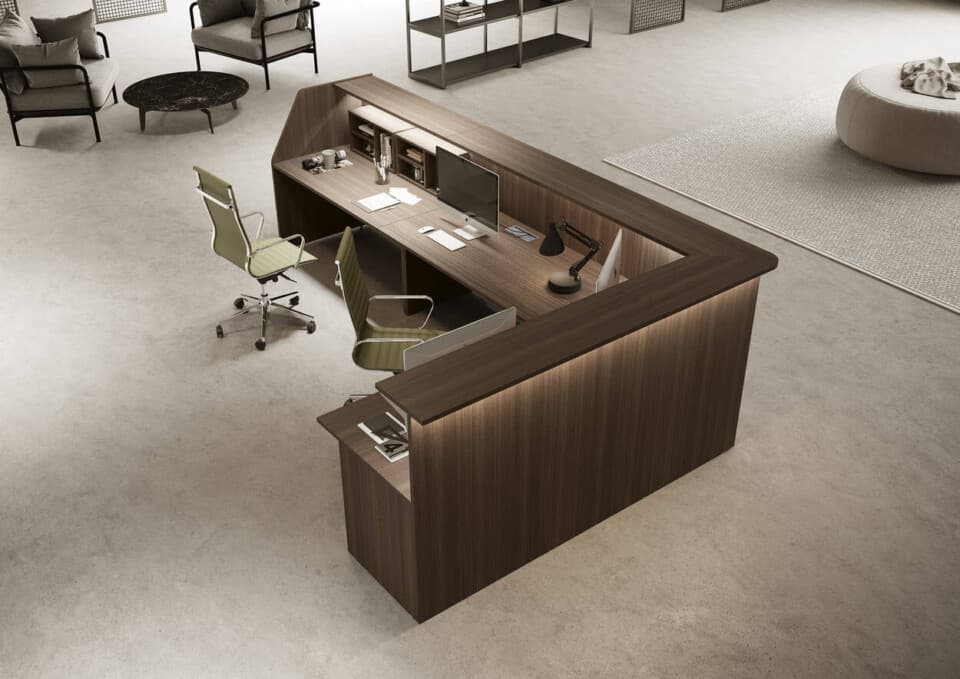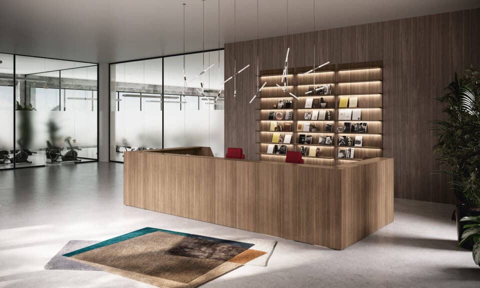 La reception è, a tutti gli effetti, il biglietto da visita dell’azienda. Il suo aspetto estetico e funzionale incide fortemente sulla percezione del brand. Design pulito, materiali di qualità e arredi ben coordinati contribuiscono a creare un’atmosfera professionale e accogliente.