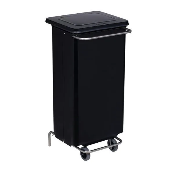 Struttura e coperchio in metallo verniciato con polvere epossidica; disponibile in vari colori per la raccolta differenziata; frontale asportabile per facilitare il ricambio del sacco; ampio pedale per utilizzo conforme al metodo HACCP; elastico fermasacco; ruote in gomma per un facile spostamento.