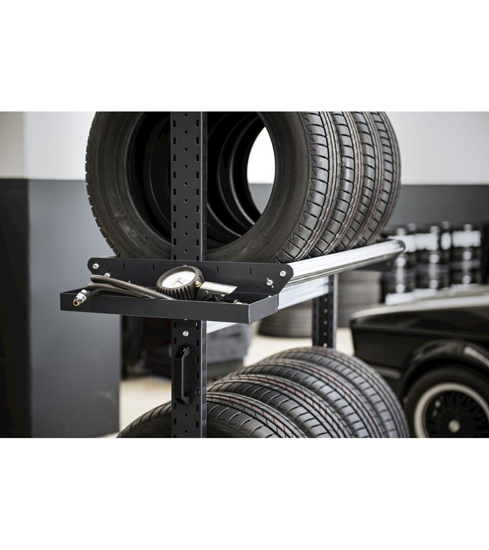 Il carrello porta pneumatici Bin Cart presenta due ripiani su cui è possibile appoggiare e trasportare in tutta sicurezza gli pneumatici. I profili in alluminio installati alla base e nella parte centrale della struttura rendono il carrello più stabile e robusto. Può ospitare un massimo di due treni di gomme e può essere facilmente movimentato all’interno dell’officina grazie alla maniglia posta sui montati e alle quattro ruote in gomma antitraccia sintetica.